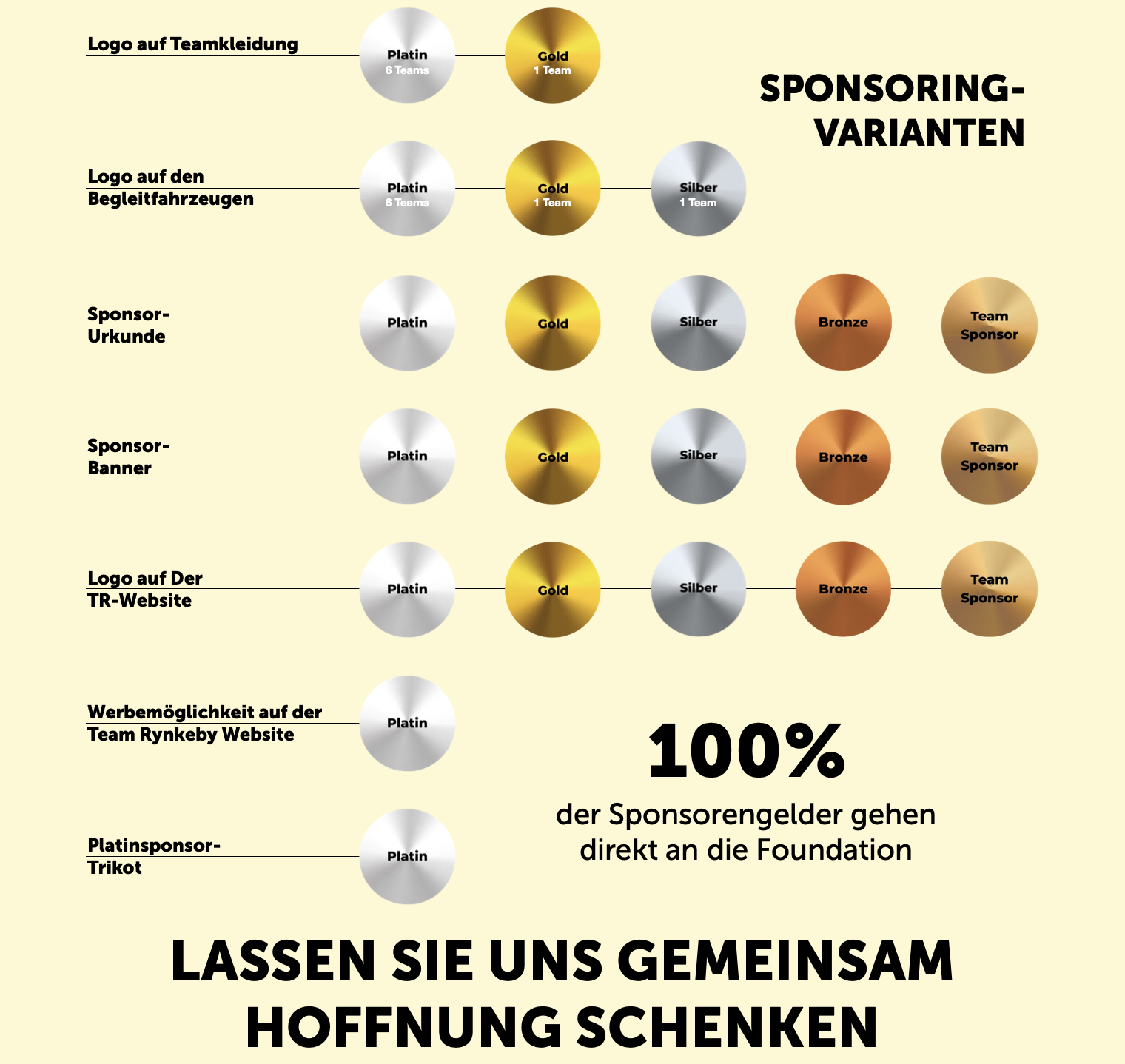 Team Rynkeby Black Forest hat eine klare Mission: Kinder mit schweren Erkrankungen zu unterstützen. Dazu suchen wir engagierte Sponsoren, deren Spenden es der Deutschen Kinderkrebsstiftung ermöglichen, lebenswichtige Arbeit zu leisten – von Forschung und Diagnose über Behandlung bis hin zu Beratung und umfassender Unterstützung für betroffene Kinder und ihre Familien. Alle Teammitglieder finanzieren ihre Teilnahme vollständig selbst – von der Ausrüstung über Fahrräder und Trainingslager bis hin zur Fahrt nach Paris.