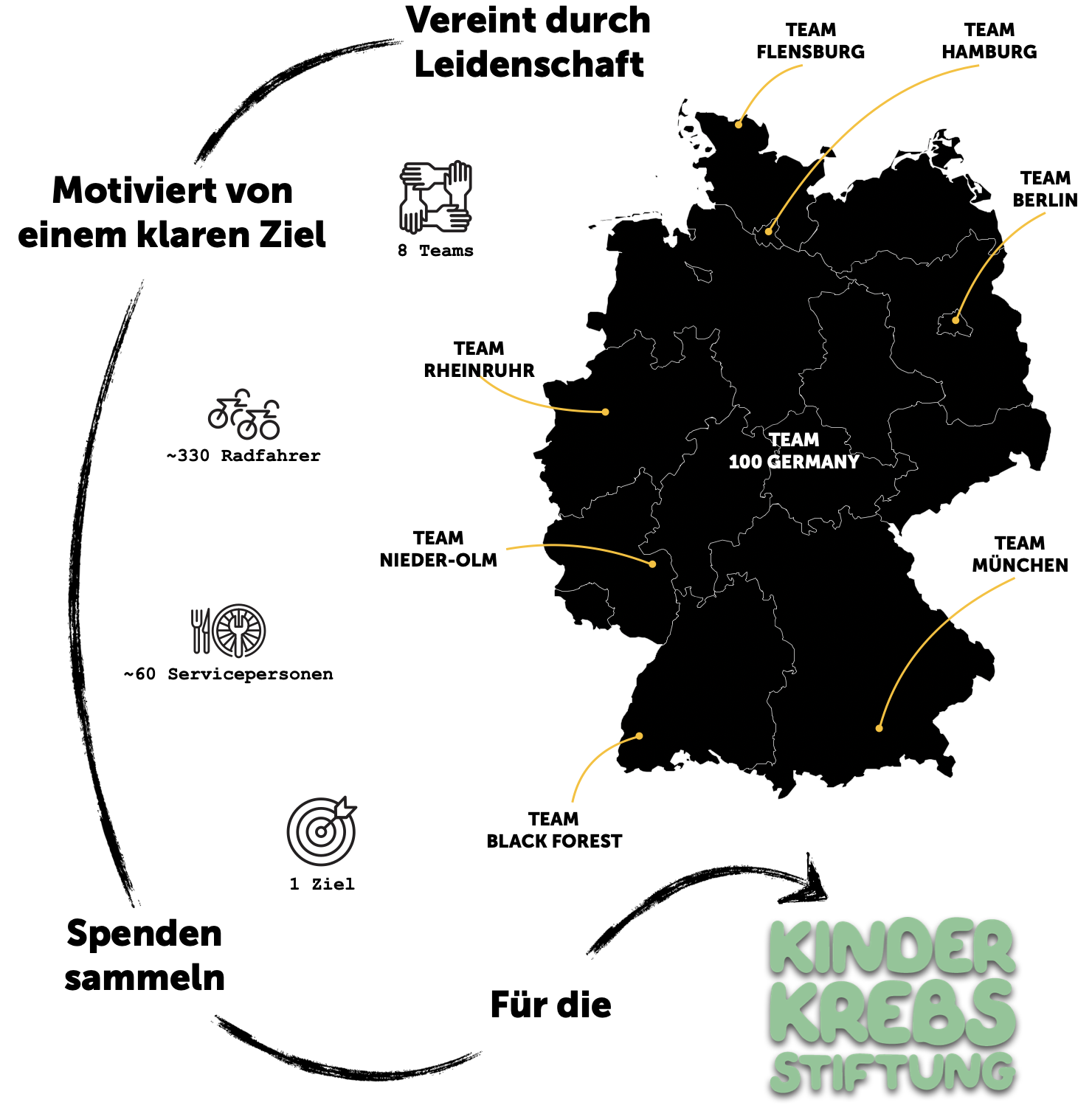 Seit dem Start in Deutschland wächst das Engagement stetig – immer mehr Menschen treten in die Pedale, um Teil dieser besonderen Bewegung zu werden. Mit sportlichem Ehrgeiz, Teamgeist und Herz unterstützen wir eines der wichtigsten Anliegen unserer Zeit: das Leben und die Zukunft schwerkranker Kinder zu verbessern.