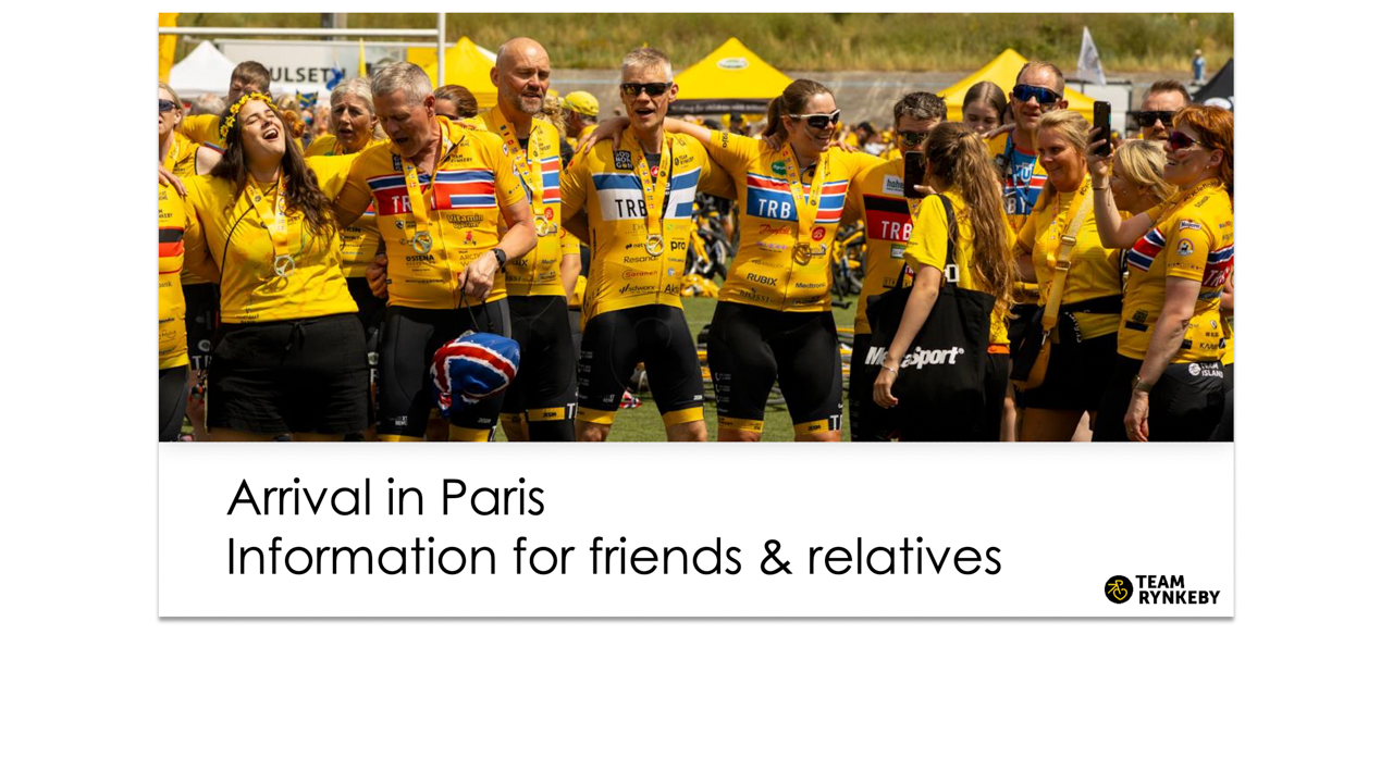 Das Team Rynkeby hat eine kleine Mappe mit den wichtigsten Informationen über die Ankunft des Teams Rynkeby in Paris am 12. Juli 2025 zusammengestellt. Wenn Sie als Angehöriger nach Paris reisen, um Freunde oder Familie zu empfangen, können Sie hier erfahren, wann und wie die vielen Teams des Team Rynkeby in der französischen Hauptstadt ankommen werden.